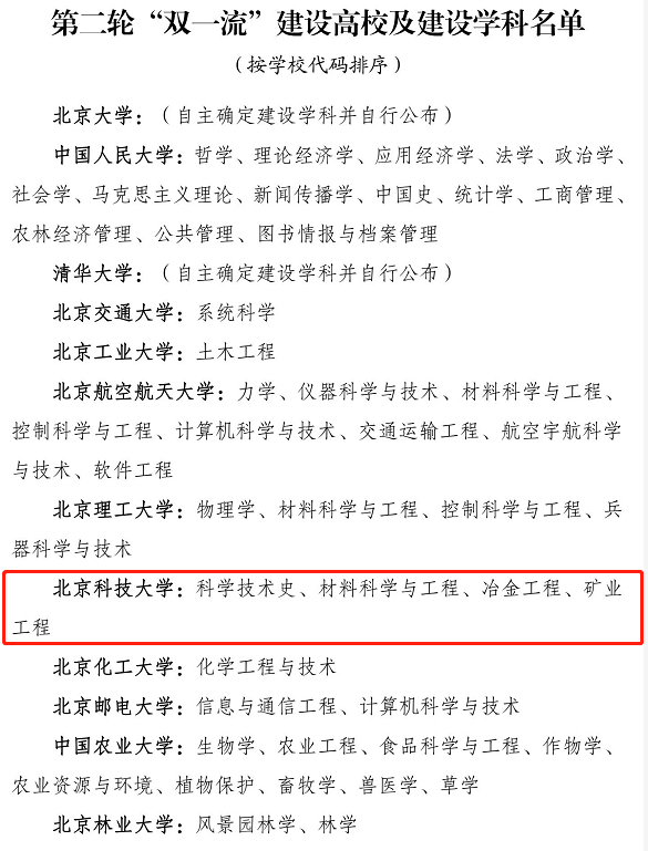 超级重磅!第二轮“双一流”公布!北科大及这些学科入选!