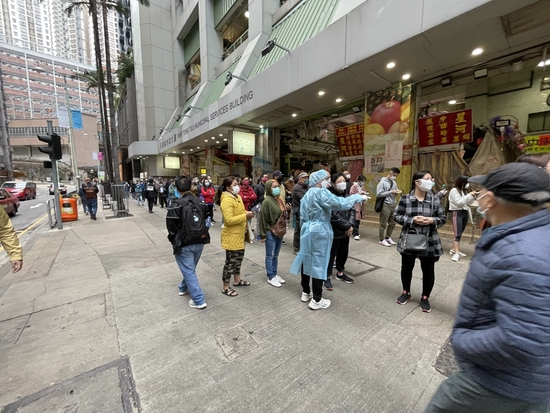 “过去香港人是排队等电梯、等巴士,现在是排队等核酸测试。”“90后”港漂朱璎这几天发现,在检测点前等候的队伍中,有坐着轮椅的残障人士,还有拄着拐杖的老人,颤颤巍巍地等着。在朱璎看来,即便港人不在乎排长队,但二度传播风险却客观存在。她以自己去的西环石塘咀体育馆检测中心为例,边上就是人流稠密的石塘咀街市。“这么多人聚在一起,检测速度又这么慢,所以大家都想买快速检测盒在家测,可是店里早就买不到了。”
