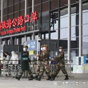 武警广东总队执勤第二支队官兵在港珠澳大桥珠海公路口岸巡逻执勤。图据新华社张乐摄