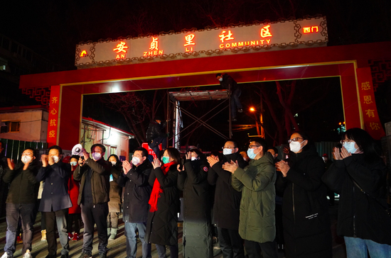 北京朝阳安贞里社区今晚8时解除管控,居民互相庆贺