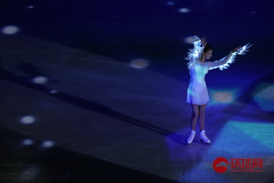[环球时报-环球网报道 记者 李昊 张振]花滑表演滑,俄奥队选手谢尔巴科娃亮相,化身白色天鹅在首体冰面上起舞。
