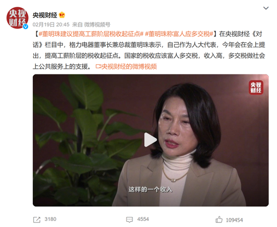董明珠:“建议富人多交税,税率加大到50%或55%”