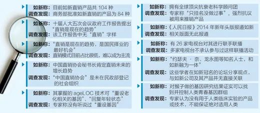 事实上,虚假宣传从公司成立之初就缠绕着整个如新。据人民日报报道,如新公司自从1984年创建于美国犹他州之后,对于其经营模式的质疑和调查就没有间断过。在美国,运用金字塔式的多层发展经销员模式是违法的,美国各地司法机关不断对如新公司提出指控。