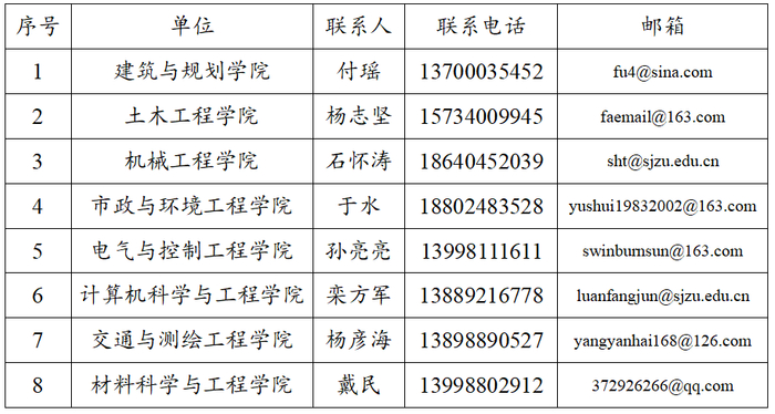 请符合条件的申请人将个人简历发送至相关学院联系人,并抄送至学校人才办邮箱:rcb@sjzu.edu.cn,邮件主题标注为“海外优青申报”。