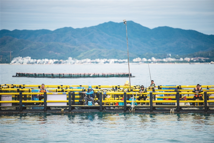 2月23日,在三亚西岛海域附近,不少钓友在深海养殖网箱边上垂钓。海南日报记者 袁琛 摄