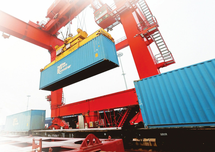 该列中欧(亚)班列由50车40英尺集装箱组成,装载汽车配件、防疫物资、棉纱、健身器材、安检仪、布料等700多吨物资,经满洲里铁路口岸通关出境,全程运行6300多公里,15天后抵达明斯克。