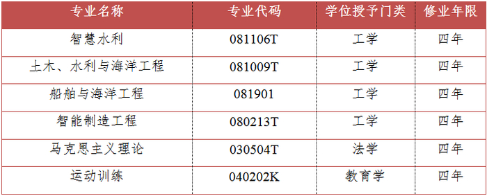 近日,教育部公布了2021年度普通高等学校本科专业备案和审批结果,河海大学申报的智慧水利、土木、水利与海洋工程、船舶与海洋工程、智能制造工程、马克思主义理论、运动训练6个本科专业全部获批。其中,智慧水利、运动训练2个专业为审批类专业,土木、水利与海洋工程、船舶与海洋工程、智能制造工程、马克思主义理论4个专业为备案类专业。智慧水利专业系全国首创的交叉复合型专业。至此,我校本科专业总数达71个,覆盖工学、理学、管理学等9个学科门类。