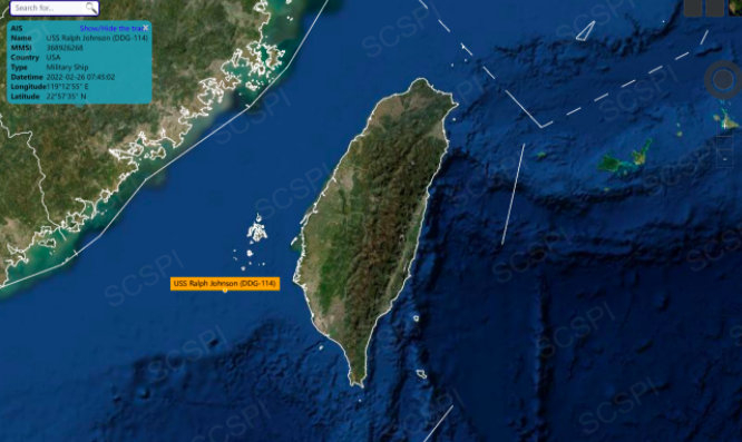 [#美海军驱逐舰正在穿越台湾海峡# ]2月26日上午,美海军拉尔夫·约翰逊号USS Ralph Johnson (DDG-114) 出现在台湾海峡南部,正在穿越台湾海峡,美海军一架EP-3E电子侦察机在台湾海峡南口提供情报支持。(南海战略态势感知)
