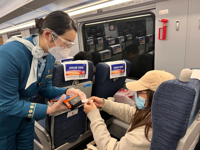 “我们针对无同行人的老年人做到一对一到站提醒、安全宣传和到站交接,为孕妇旅客提供手持呼叫器,协助接开水、买零食、送餐到位,利用广播播报经停车站城市温度,提醒旅客根据实际情况提前增减衣物,收纳物品。”对于经历过从普速到高铁9次春运的赵莹静来说,今年春运更是一次重要的检验,她和同事们一起迎接中老铁路线春运“首秀”。
