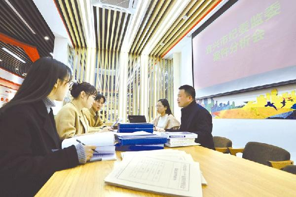 江苏省宜兴市纪委监委建立行贿人员数据库,将行贿人列入“黑名单”,实行动态管理,联合惩戒。图为近日,该市纪检监察干部根据行贿人员数据库信息对案件进行分析研判。徐瑨 摄