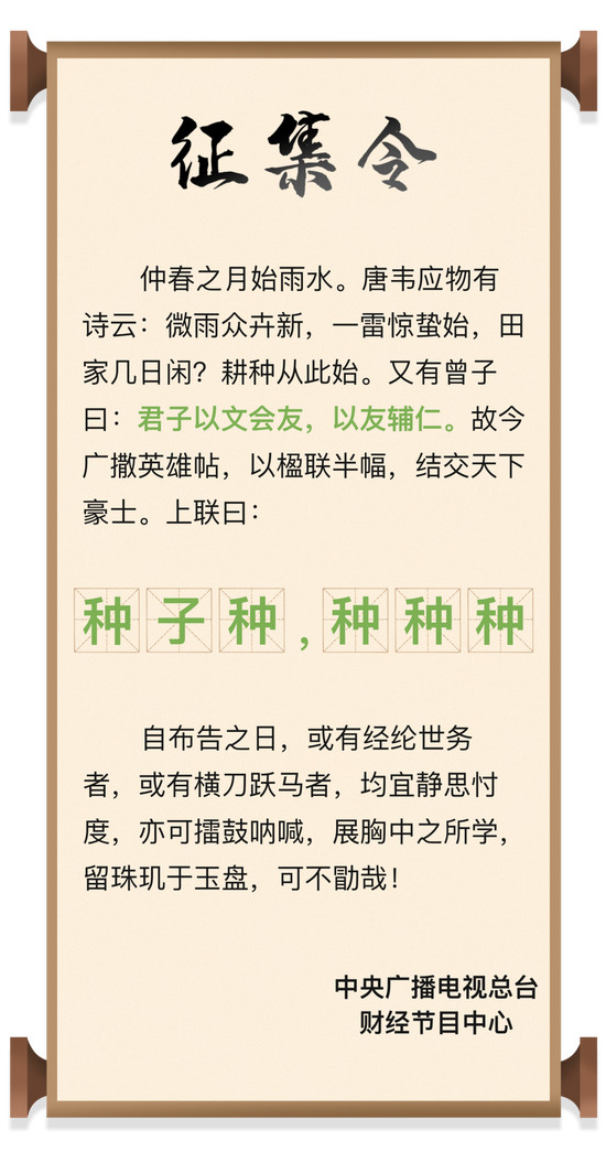 一联难倒天下英雄!总台财经中心征集下联引轰动