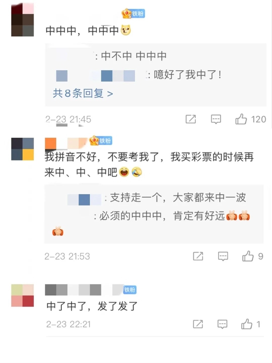 台上有人拼的是内功招式,台下有人玩的是消遣娱乐。比如这位“一字派”的“好汉”给出的下联“中中中,中中中”,虽然内容不太“中”,但也代表了很多人期盼中彩票的美好愿望。