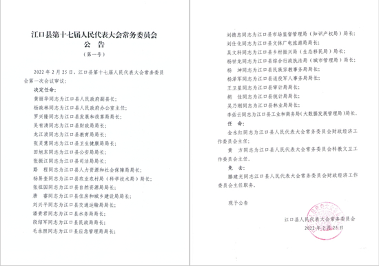 江口县第十七届人民代表大会常务委员会公告(第一号)