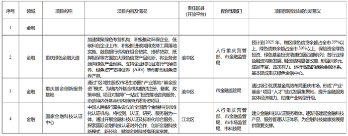 围绕打造西部金融中心,金融领域集结渝中区、江北区、两江新区、重庆高新区,将建设国家金融科技认证中心、中钞汇链(重庆)跨境金融区块链平台等6个项目。此外: