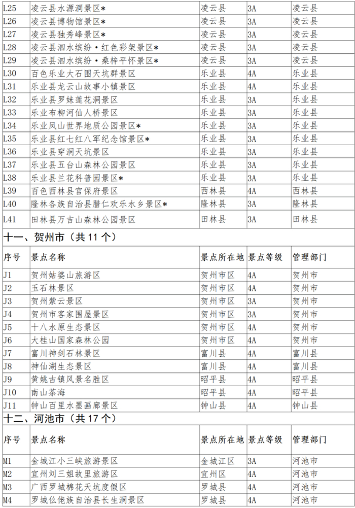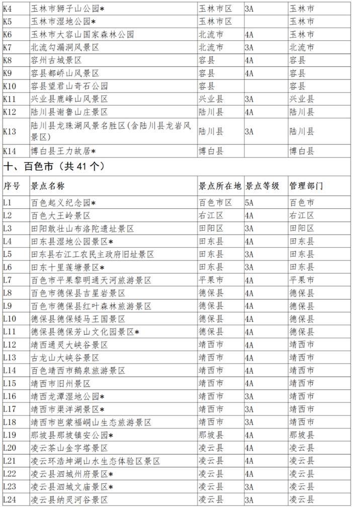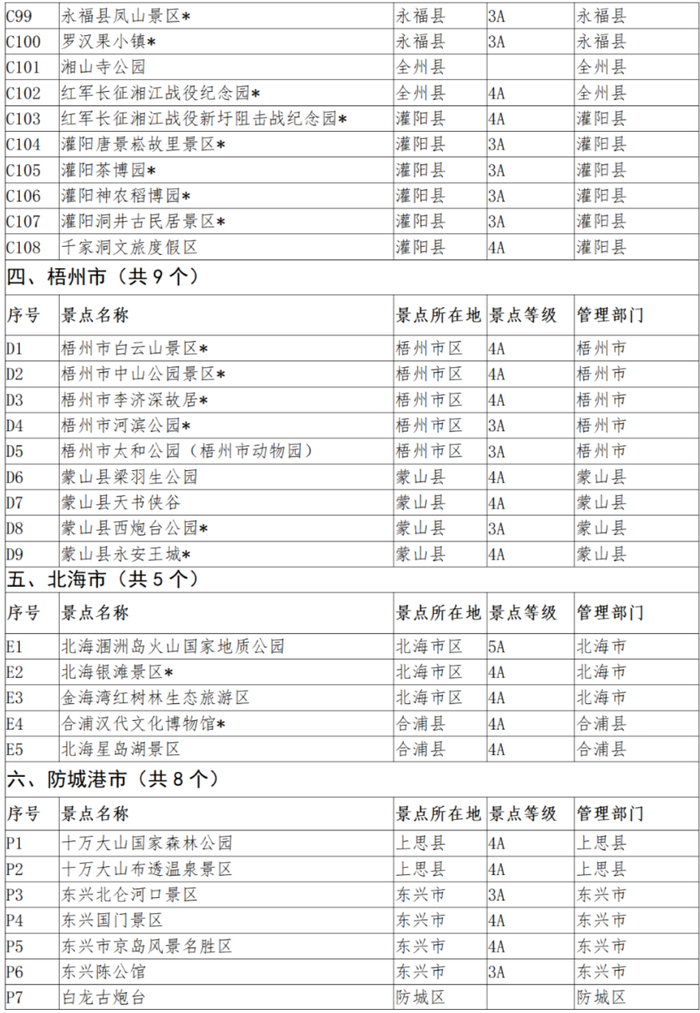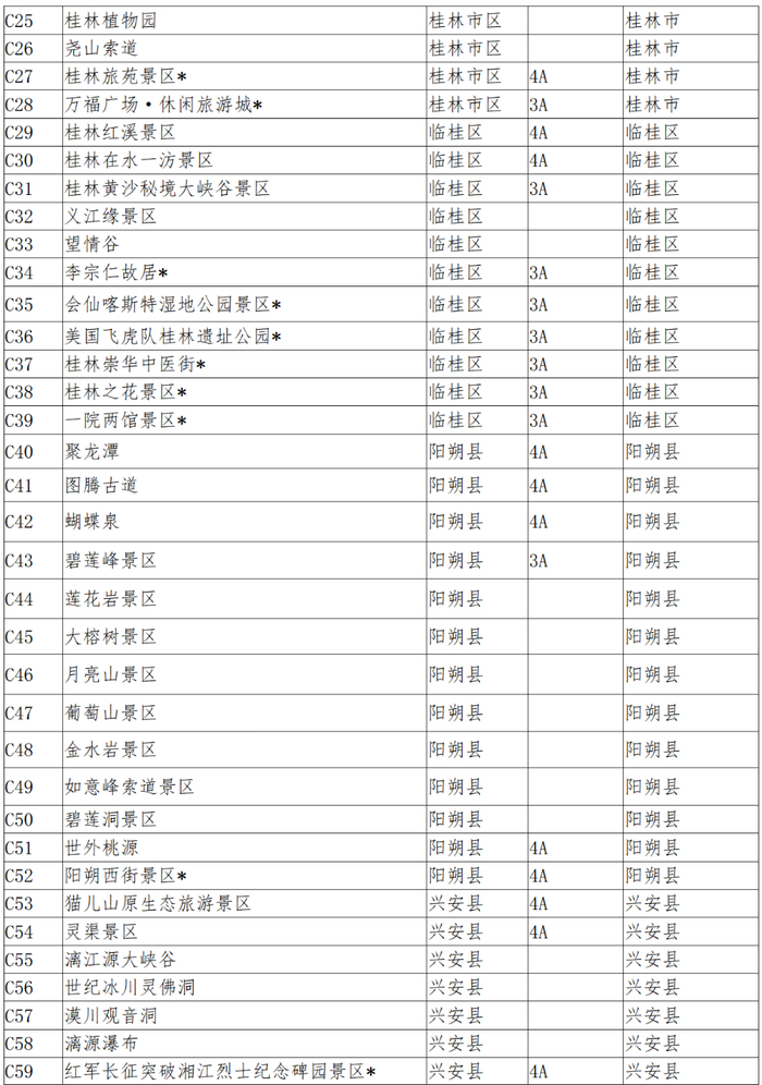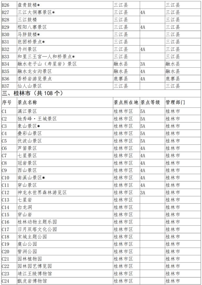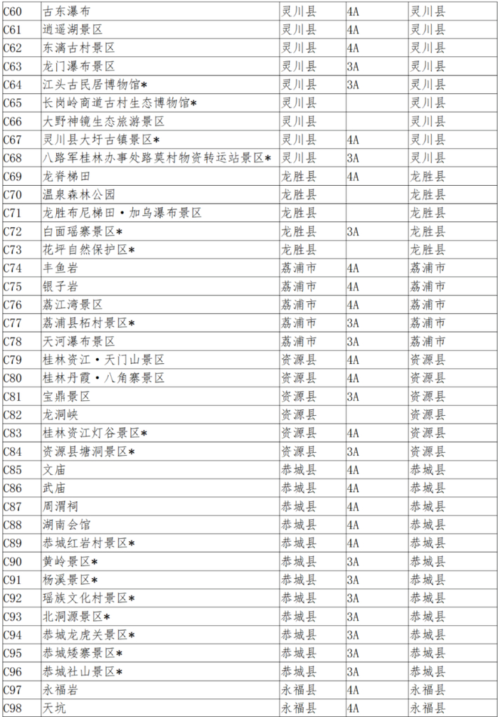 (景区名称标有*的为目前免费开放的景区)