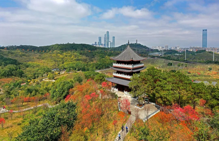 ▲近日,南宁市青秀山风景区里各色花卉纷纷绽放,与景区里的亭台楼阁互相映衬,呈现出一派欣欣向荣的景象。广西日报记者 周军 摄