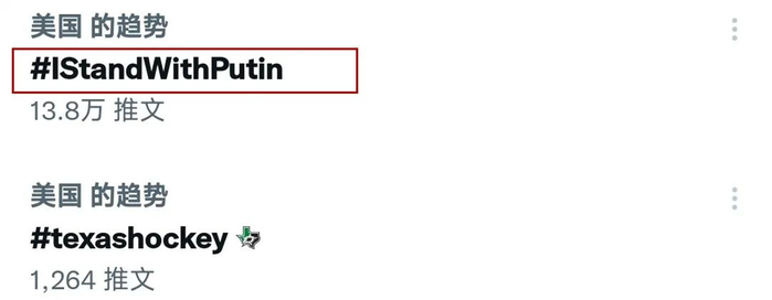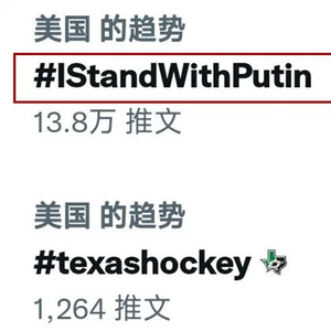 “我支持普京”tag今天登上美国推特热门趋势