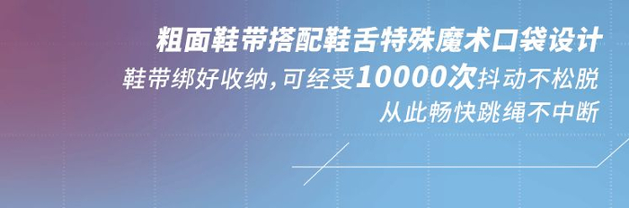 “此外,这款跳绳鞋在鞋舌口袋处设置了魔术口袋,能够有效防止鞋带松动。在鞋外底最容易磨损的地方,还设置了耐磨橡胶。这些针对跳绳而做的特殊设计,能够更好地促进青少年跳绳运动表现提升,健康跳绳,快乐跳绳。”顾耀东介绍。