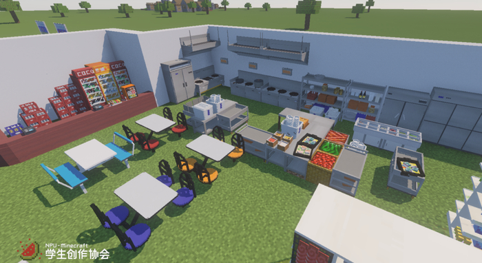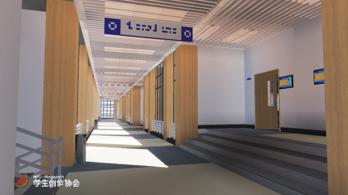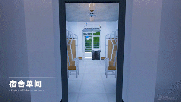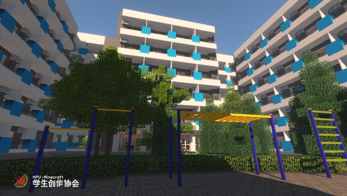 对于原版Minecraft只包含方块而不方便做精细的问题,团队专门编写开发了属于自己的模组——“Build the World for NPU”。这样团队可以使用外置建模软件对游戏内精细的物品、门窗等设施进行建模,以实现最大程度的还原。截止到今天,这个模组已经更新了27版,包含了各类模型700余件,自制材质贴图200多张。