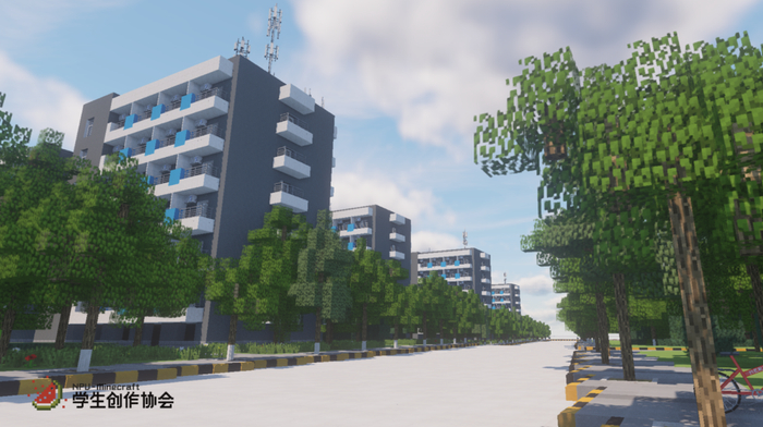 整个西工大复原工程最早起源于2018年,当时西工大Minecraft爱好者群组里就有人提出了在游戏里还原西工大的这个想法。面对如此巨大的工程,那时的大家还只是随口一说,几位有想法的同学搭建了一个服务器,开始了对宿舍楼简单的还原工作。在那时,西工大复原工程的第一栋建筑诞生了——星天苑G座学生公寓。