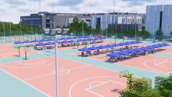 2021年末西安疫情期间,团队复现了长安校区云天苑操场全员核酸检测场景。