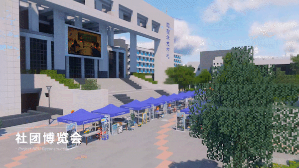 2021年新学期社团百团大战,团队依托Minecraft虚拟校园专门为社团博览会提供了线上实景展示图片和地图。