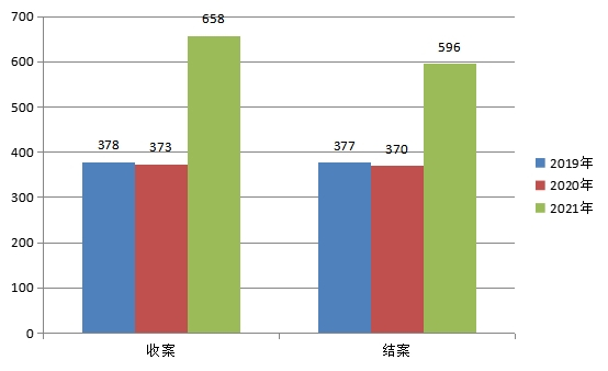 2019年至2021年,红岩寺法庭共计收案1409件,结案1343件,结案率为95.32%。