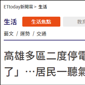 而在3日下午4、5点左右,高雄市三民、左营、盐埕等行政区,在复电后竟然又再次断电。断电又停水,让当地一众居民纷纷怒呛“烂透了”,还有人在网上自嘲,“好像回到了原始人的生活”。