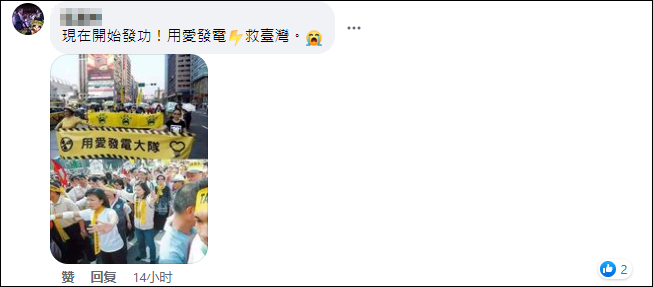 有人揶揄:“现在开始发功!用爱发电,救台湾。”