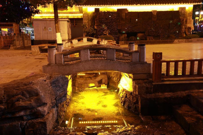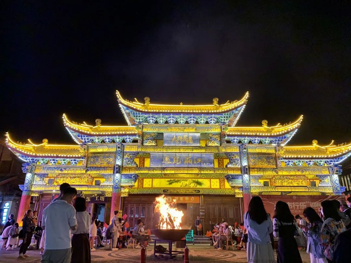古镇里,客栈、商铺、小食坊林立,游人可以品尝各种特色美食,感受“舌尖上的禄丰”。待夜幕降临,各色灯火点缀金山古镇的黑夜,或流光溢彩、或含蓄委婉,绚丽灯火包裹下的亭台楼阁、轩榭廊舫、小桥流水,都展现出旖旎的风情。