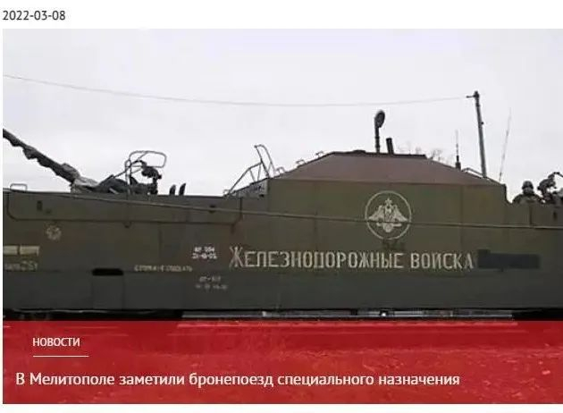 俄航空港网站8日的文章以“一辆专用装甲列车抵达梅利托波尔”为题称,目前外界对于这列特殊的装甲列车在该地区的用途一无所知,最初有关信息被认为不可靠,后来网络上出现了一段视频,其中可以识别出这一特殊的装甲列车。
