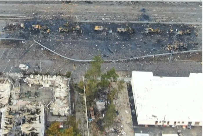 近日,一个名为“乌克兰武器追踪者”( Ukraine Weapons Tracker )的推特账号发布了一组照片,显示十几辆军车被烧成灰烬,已看不出原本模样。该账号的文字说明声称,这是乌克兰的无人机提供位置,再由60毫米迫击炮发动炮击,导致车队中运送燃料的卡车、弹药车发生爆炸造成多重伤害,导致俄罗斯车队在基辅附近被完全歼灭。