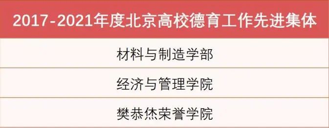 材料与制造学部紧紧围绕立德树人根本任务,瞄准国际前沿,解决国家急需,服务首都建设。近五年,培育了全国样板党支部、全国高校首批“双带头人”教师党支部书记工作室、北京高校先进基层党组织、教育部及北京市高校课程思政示范课程教学名师和教学团队、全国优秀教育工作者、全国先进工作者、北京高校优秀共产党员。7个班级获评北京市先进班集体,15个学生党支部在北京市红色“1+1”示范活动中获奖。学生科技竞赛和创新创业比赛累计获得国家奖项80项,省部级奖项百余项。其中,第七届“创青春”中国青年创新创业大赛获得金奖;第十六届“挑战杯”全国大学生课外学术科技作品竞赛中荣获特别一等奖;第十二届“挑战杯”中国大学生创业计划竞赛获得金奖;第七届中国国际“互联网+”大学生创新创业大赛一项金奖二项铜奖。学部连续五年获评就业创业工作先进集体,本科生深造率达54.4%。