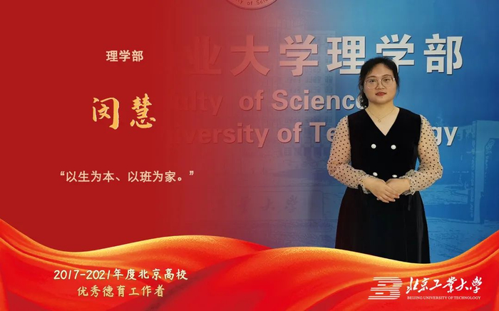 闵慧担任北工大第一届统计学本科班班主任期间,坚持贯彻本科生导师制、建立学生学业档案、树立优秀典型的教学创新。经过不断努力,170681班毕业率100%,签约率90.5%,深造率66.7%,班集体荣获北京市先进班集体等2项市级奖项、北工大先进班集体等6项校级奖项,学生个人荣获国际、国家级奖项14人次,省部级奖项9人次,校级奖项15人次,发表学术论文2篇,软件著作权1项,闵慧同志获得北工大优秀教师等5项校级奖项。