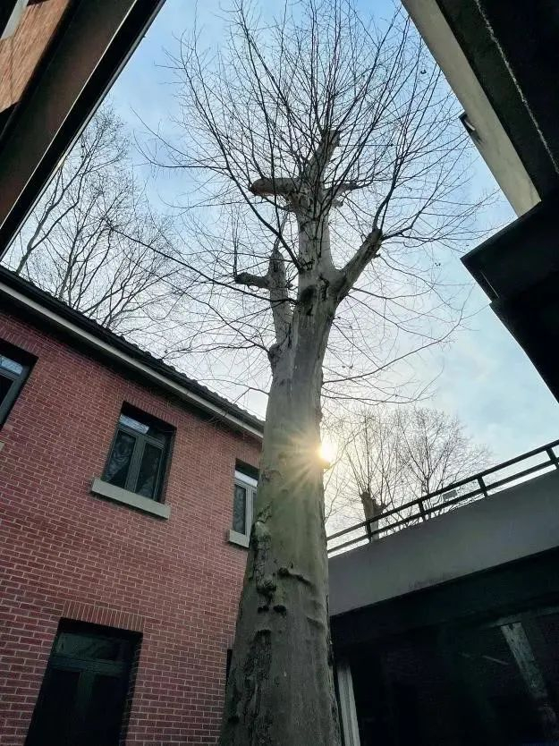 梧桐语问学中心的明智楼里,有一棵张培刚先生带着师生种下的梧桐树,如今已经有60多年的历史了,根深叶茂,双人合抱不住。建校之初,建校筹委会主任查谦和建校办公室主任张培刚教授高瞻远瞩,经过反复研究、比较,最后选定在喻家山南麓、关山地区建校。70年栉风沐雨,春华秋实,华中科技大学在2022年迎来70年华诞。因缘巧合的是,70周年校庆工作办公室恰好在明智楼,环绕着这棵大树。