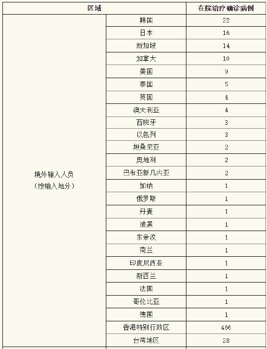 截至2022年3月12日24时,累计境外输入性确诊病例4329例,出院3728例,在院治疗601例。现有待排查的疑似病例4例。