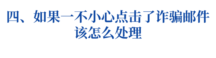 对接收诈骗邮件的电脑要及时做全盘扫描杀毒,诈骗邮件中可能附带有病毒、木马的链接或附件。