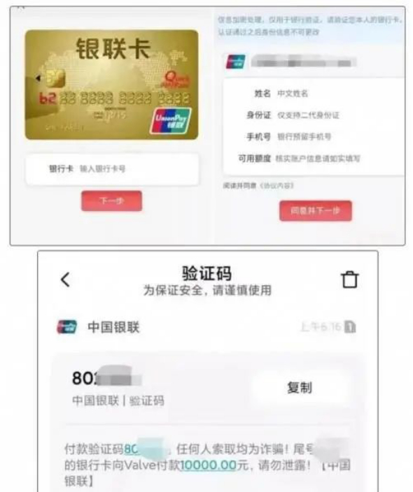 如果有人不慎上当,扫码后就会跳转到攻击者设计的诈骗页面中,诱导填写银行卡号、身份证号、手机号等敏感信息,攻击者在收到这些信息后便会发起转账请求,受害则也会收到银行发来的验证码,输入后,攻击者就可以完成相关的转账操作,成功实施诈骗。