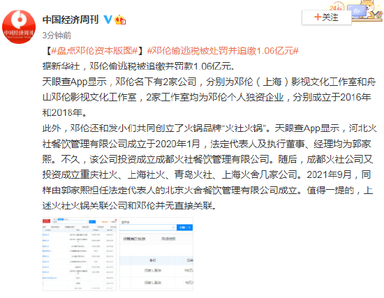 邓伦偷逃税被处罚并追缴1.06亿元 盘点邓伦资本版图