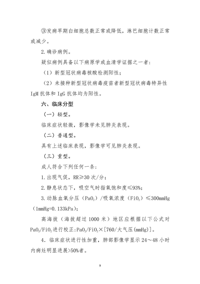 关于印发新型冠状病毒肺炎诊疗方案(试行第九版)的通知