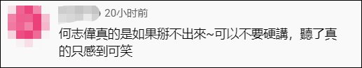 何志伟一番言论把岛内网民也给看傻了,“如果真的瞎掰不出来,不要硬讲”“每次听何志伟讲话,都觉得台湾未来堪忧”。