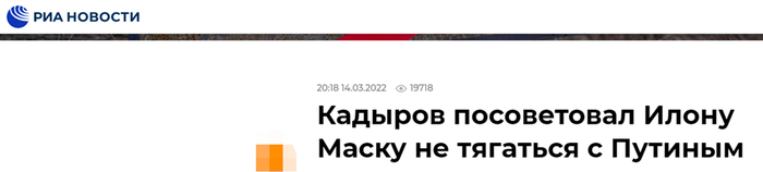 (俄新社:卡德罗夫建议马斯克不要跟普京争胜负)
