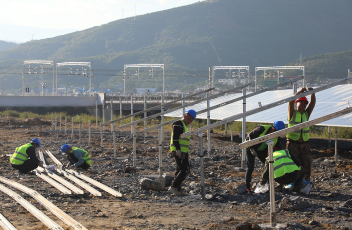 玉磨铁路元江站光伏发电项目的建设现场