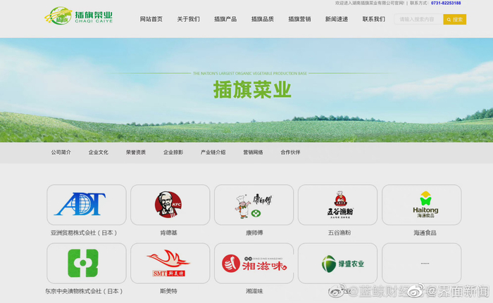 [肯德基康师傅为插旗菜业合作伙伴]#插旗菜业合作伙伴包括肯德基康师傅# 插旗菜业官网显示,合作企业有康师傅、肯德基、五谷渔粉等知名餐饮企业。