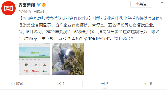 315曝光“土坑”酸菜卫生问题 被点名企业合作伙伴包括肯德基康师傅