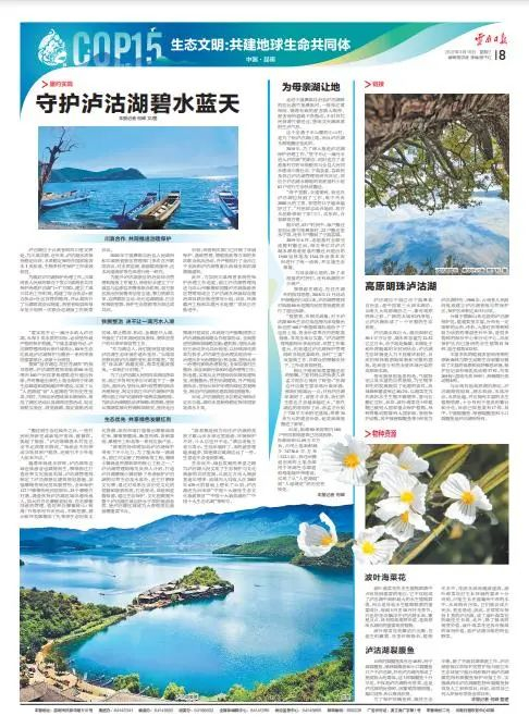 守护碧水蓝天!《云南日报》整版聚焦泸沽湖生态保护
