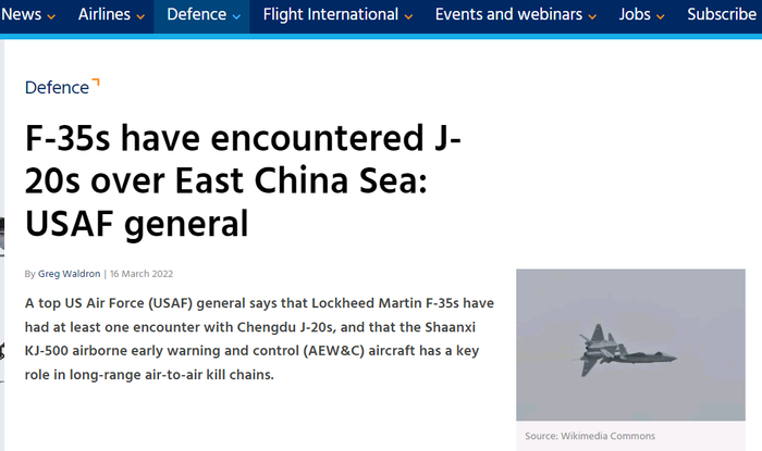 威尔斯巴赫还表示,“我们目前看到的是歼-20正在执行制空任务。我们注意到他们把歼-20飞得非常好。我们的F-35战斗机最近在东海与歼-20进行了相对接近的接触,歼-20所属的指挥和控制体系让我们印象深刻。”