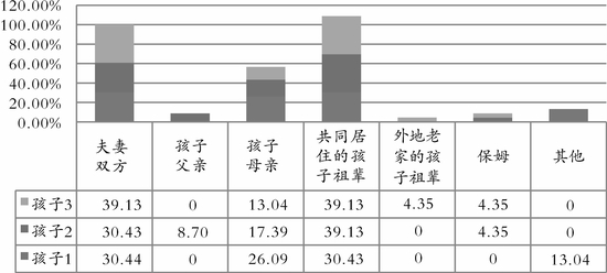 图2. 三孩女教师家庭中孩子的主要照料者(%)。论文附图