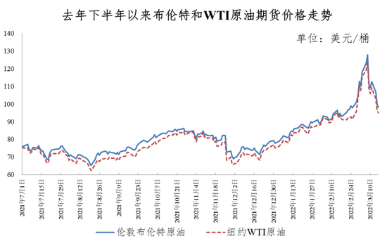 答:今年以来,全球石油市场供需偏紧,地缘政治事件频发,国际油价持续上涨,以布伦特原油期货价格为例(下同),2月23日为每桶96.8美元,比年初上涨22.6%。2月24日俄乌冲突爆发后,国际油价快速冲高,3月7日盘中一度超过每桶139美元,创13年来新高,此后又震荡回落,目前已降至每桶100美元左右,仍高于俄乌冲突爆发前水平。