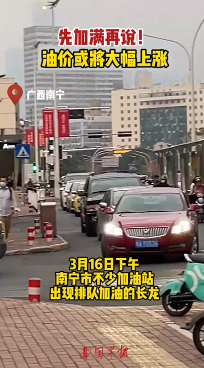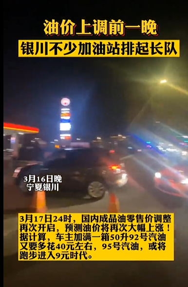 据多个媒体报道,16日晚,不少车主赶在涨价前去加油,甚至加油站排起了长队。